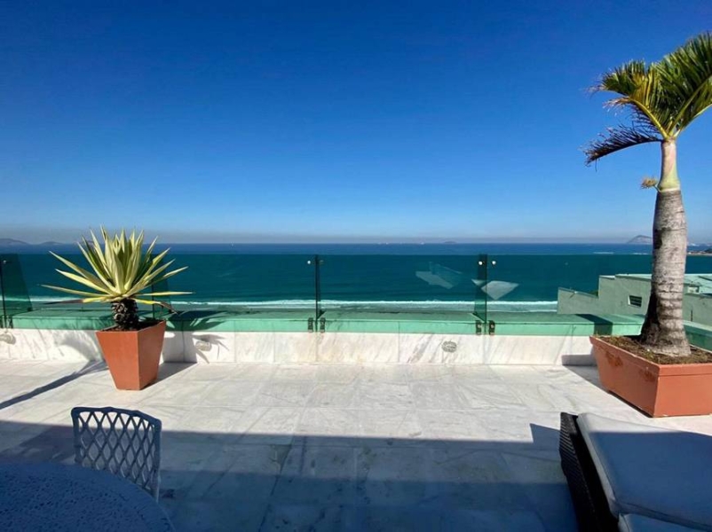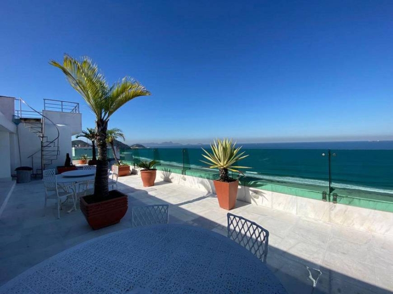 Wonderful Penthouse on the Beach with a beautiful view of Copacabana Sea, 24-hour concierge, and a playground. Close to Arco Verde subway. 2 parking spaces on the deed! Renovated by architect Philip Stac, private elevator.