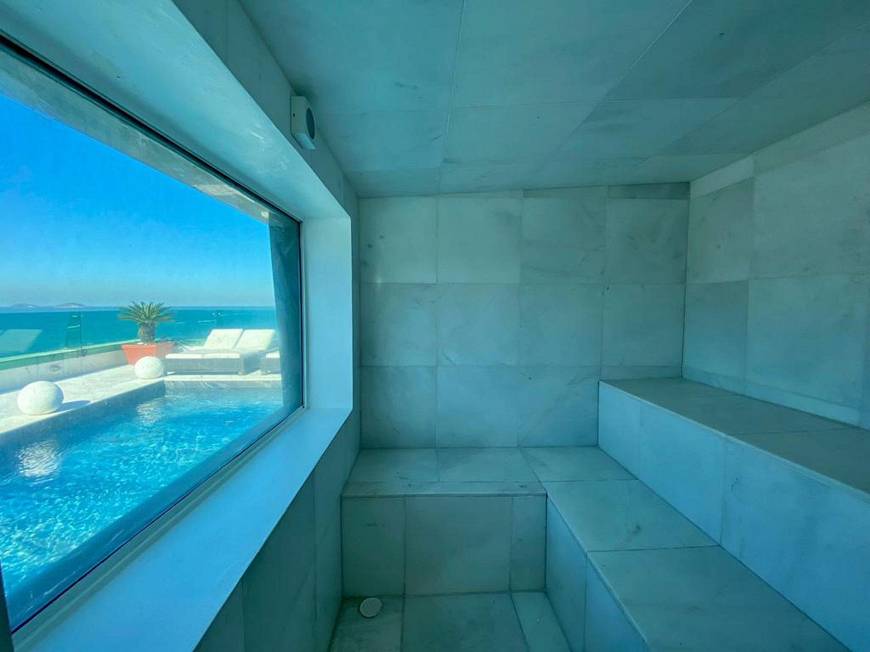 Wonderful terrace with breathtaking ocean view, 1 Presidential Suite, lounge, pool with waterfall, sauna, barbecue, wood-fired oven, and auxiliary kitchen, both with independent air conditioning system.