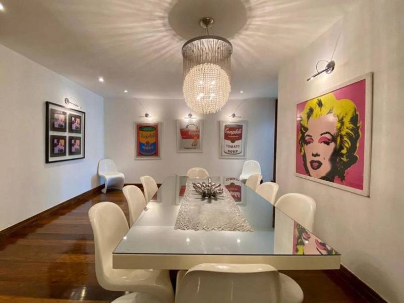 Large entrance hall, Living room with a beautiful ocean view, hardwood floors, home theater, 2 master suites, 2 suites with jacuzzi. Planned and equipped kitchen, laundry room with 2 maid’s quarters!