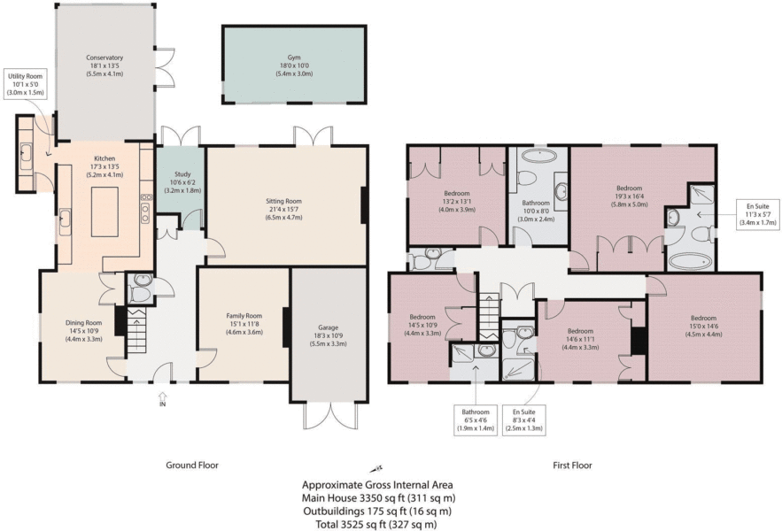 The immaculately presented accommodation comprises reception hall, formal reception room, a further living room with an original feature fireplace, a beautiful open plan kitchen/dining/family room which forms part of a solid oak framed extension with vaulted ceilings and doors out to the patio area, five double bedrooms, study, playroom, luxury refitted family bathroom, three further en-suite upgraded bathrooms, cloakroom & WC, Utility/boot room.