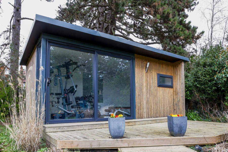 The rear garden offers privacy and seclusion with mature perimeter trees and hedging. Wonderfully landscaped, with a patio area and formal lawn, cottage garden, an area for the children’s trampoline or swings, and a detached garden studio that is currently being used as a gymnasium but could be used as an office/studio.