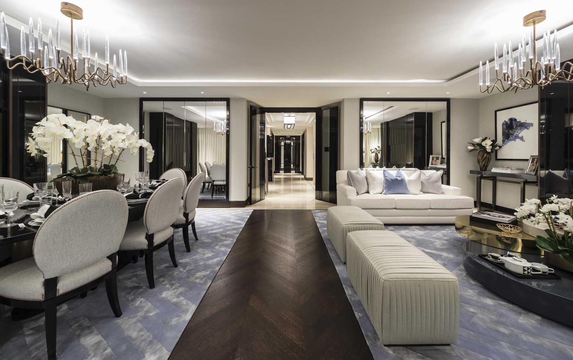 On the lower ground floor, the house provides a discreet staff suite complete with an additional storage room, a separate kitchen, and a comfortable bedroom with en suite bathrooms.
