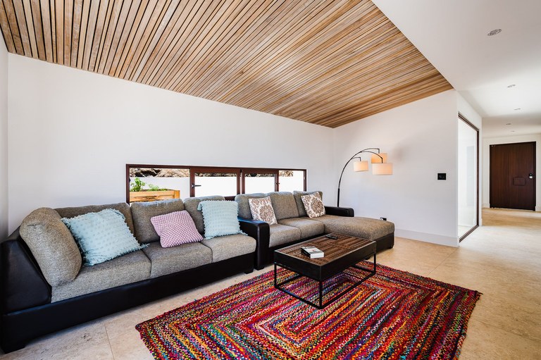 Casa Blanca also has a cozy and cheerful family room, with teak ceilings and the same dramatic views of the ocean. The home has three bedrooms, each of which have their own en-suite bath, and have pristine ocean views.