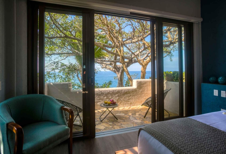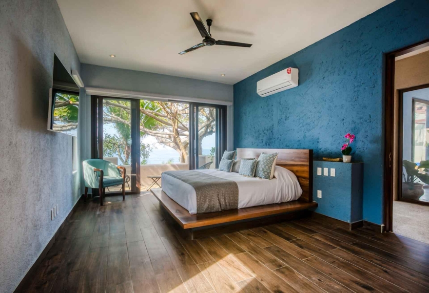 Hosting three, en-suite bedrooms and an ample, ocean view, pool terrace, this fabulous home is perched approximately 150 feet above a quiet beach cove on a half acre. Enjoy the feeling of total privacy while living in the treetops, overlooking one of San Pancho’s most incredible 180-degree coastal views of the Pacific Ocean and tropical jungle. Casa Miramar, hosting 3 en-suite bedrooms and spanning 3,900 square feet, is pure luxury with unmatched views. The entire back of the house opens up to the outdoors, allowing the ocean breezes to flow freely throughout the home. The outdoors and indoors are truly combined in the open-concept living and dining area. The kitchen is a dream, with its gorgeous views of outdoors, stainless steel appliances and ample space. The principal suite, located on the second level, offers a plush, inviting king-size bed, with a sitting area and private balcony overlooking both the jungle and ocean. The en-suite bathroom is grand, featuring a walk-in shower, hardwood floors, and double vanities. The second en-suite king suite on the lower level encompasses an ocean view balcony along with a private, jungle-set outdoor patio with exterior shower and bathtub. An additional en-suite bedroom with a queen-size bed also lies on the lower level and is surrounded by the tropical courtyard with lush gardens. You will feel as if you are outdoors while showering with private views of the garden. After passing through a separate the iron entrance gate, through flowering gardens and giant palm trees, Casa del Risco sits with the second level hosting a king en-suite bedroom with outdoor shower and ocean view terrace. Descend several garden steps over a wooden bridge and through an antique door into the entry level bedroom hosting a king size bed, outdoor shower, kitchenette and terrace. Meander below to another lower level patio with a BBQ, wet bar, and outdoor dining. Continuing further out, you will find the ocean view pool. Each home is completely private and autonomous from one another only sharing a parking area and beach access. From either Casa Miramar or Casa del Risco, follow the path down a clear-cut, private stairway leading you down the mountain side to the secluded beach cove below. Casa Miramar & Casa del Risco combined are a not to be missed, luxury retreat. These homes are conveniently located close to the lively village of San Pancho, less than 30 minutes to La Mandarina or Punta de Mita and just an hour drive to Puerto Vallarta for more shopping and entertainment.
