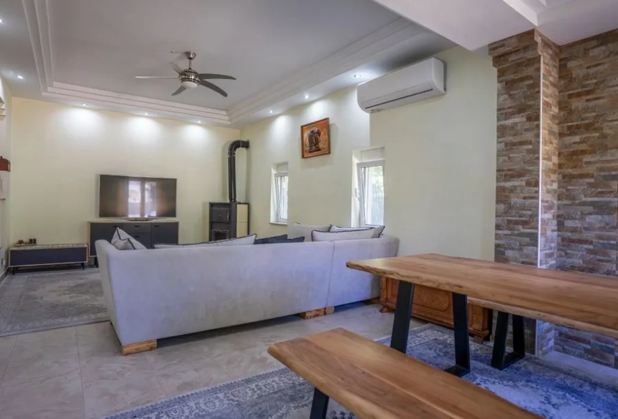 A housing complex for sale on a plot of 2000 sq.m. The Complex was constructed for 2 families living on a plot of 2 acres while maintaining the privacy and autonomy of each residence.