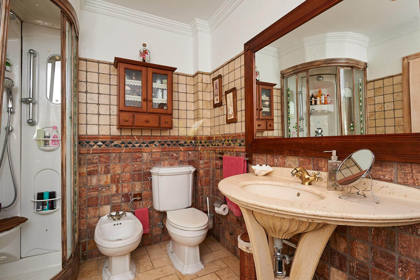This well-constructed property was built in 2005 and spans an impressive 1,070 square meters in total. The building’s structure features a reinforced concrete framework, while the roof boasts a charming sloping design adorned with ceramic tiles. The enclosing and partition walls are crafted from vibrated concrete blocks of varying thicknesses. The exterior showcase rendered finishes with a tasteful coat of paint.