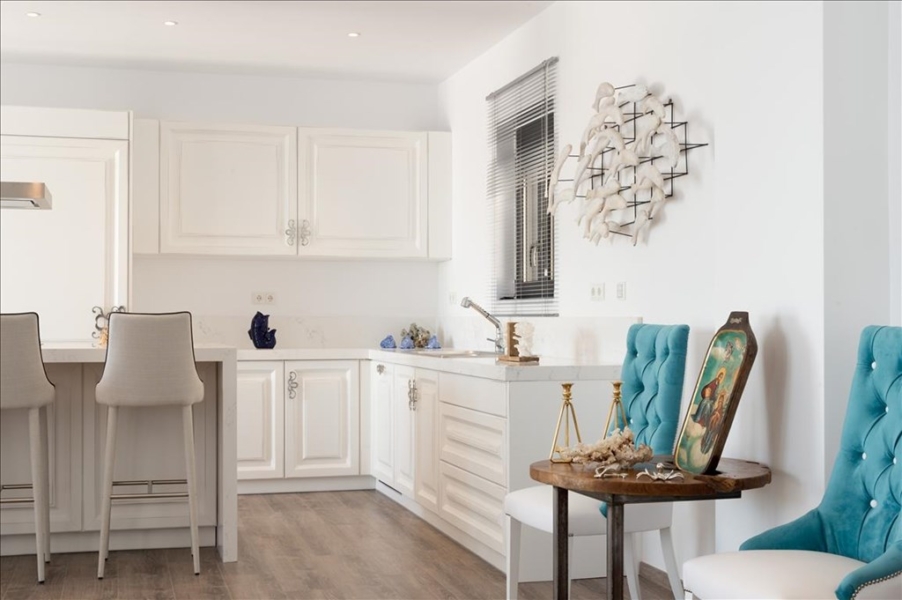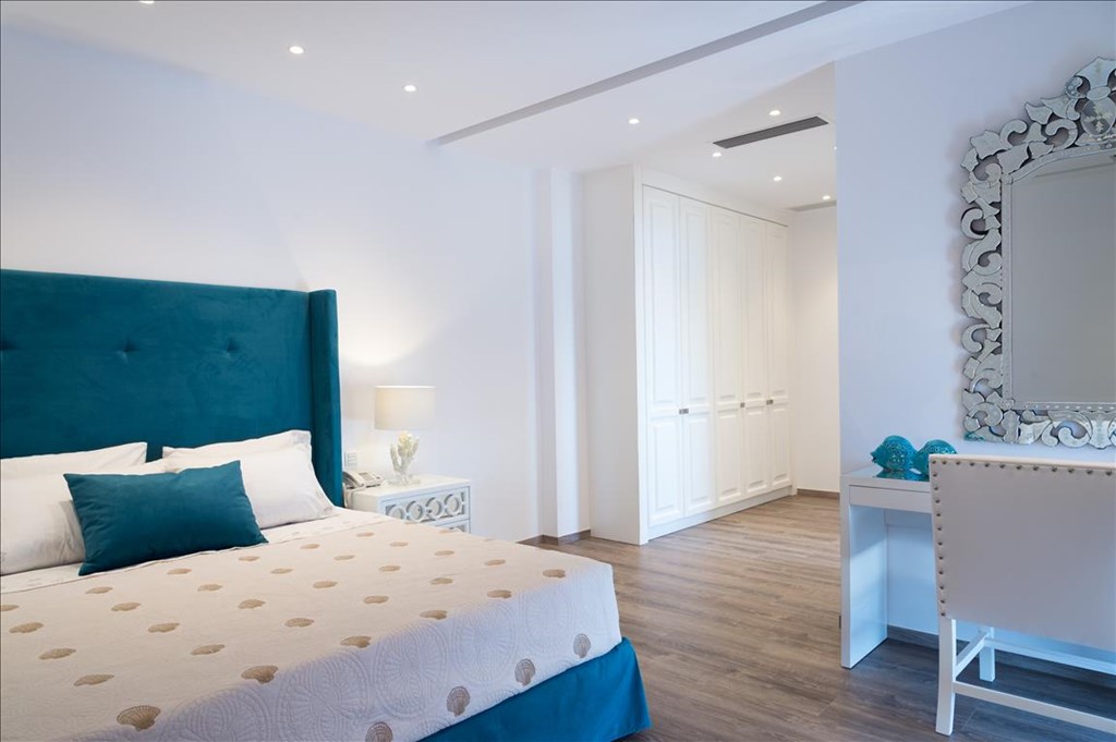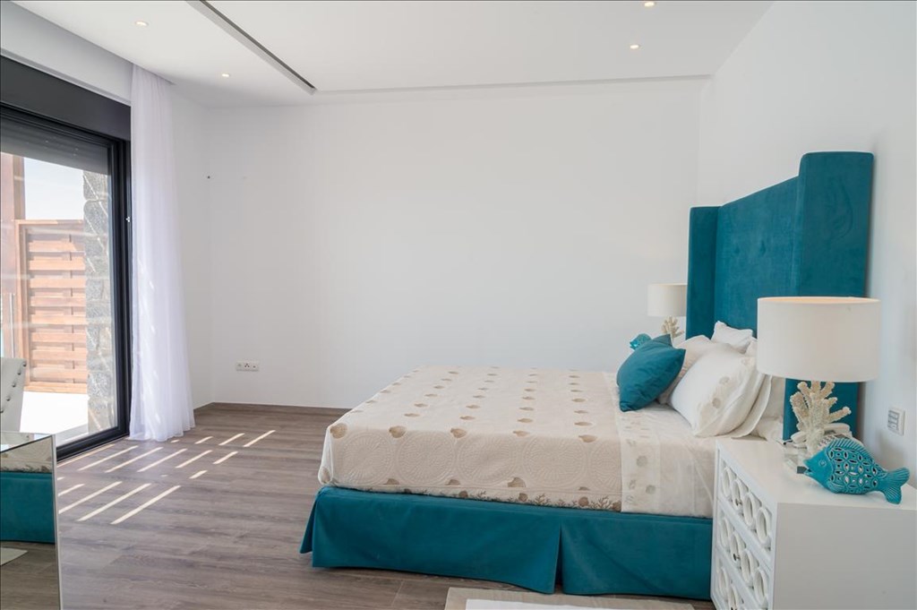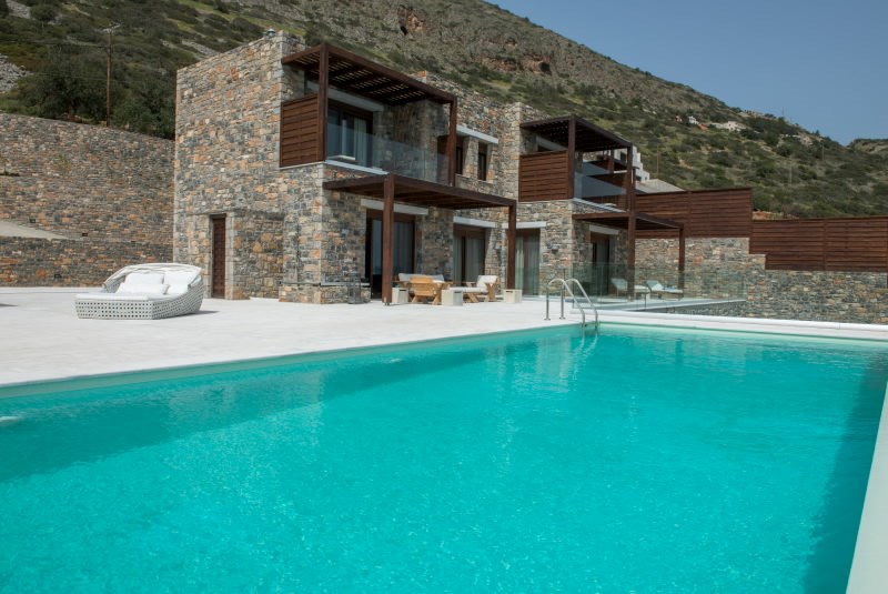 The solitude and breathtaking beauty of the place highlight the luxurious design of the villas with a private swimming pool. The houses are built in a combination of white walls with grey stone and rigid cubic forms of distinguished Cretan architecture.