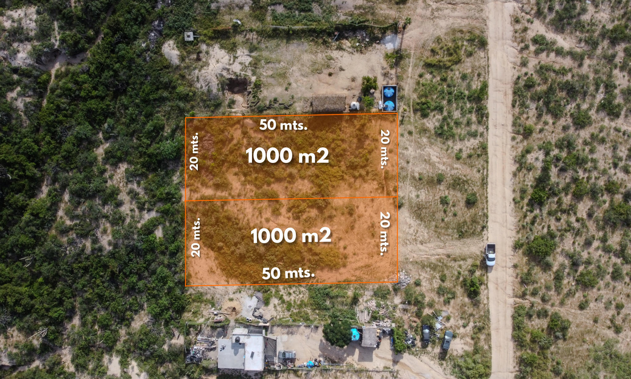 There are two plots of land, they can be sold together or separetely.
