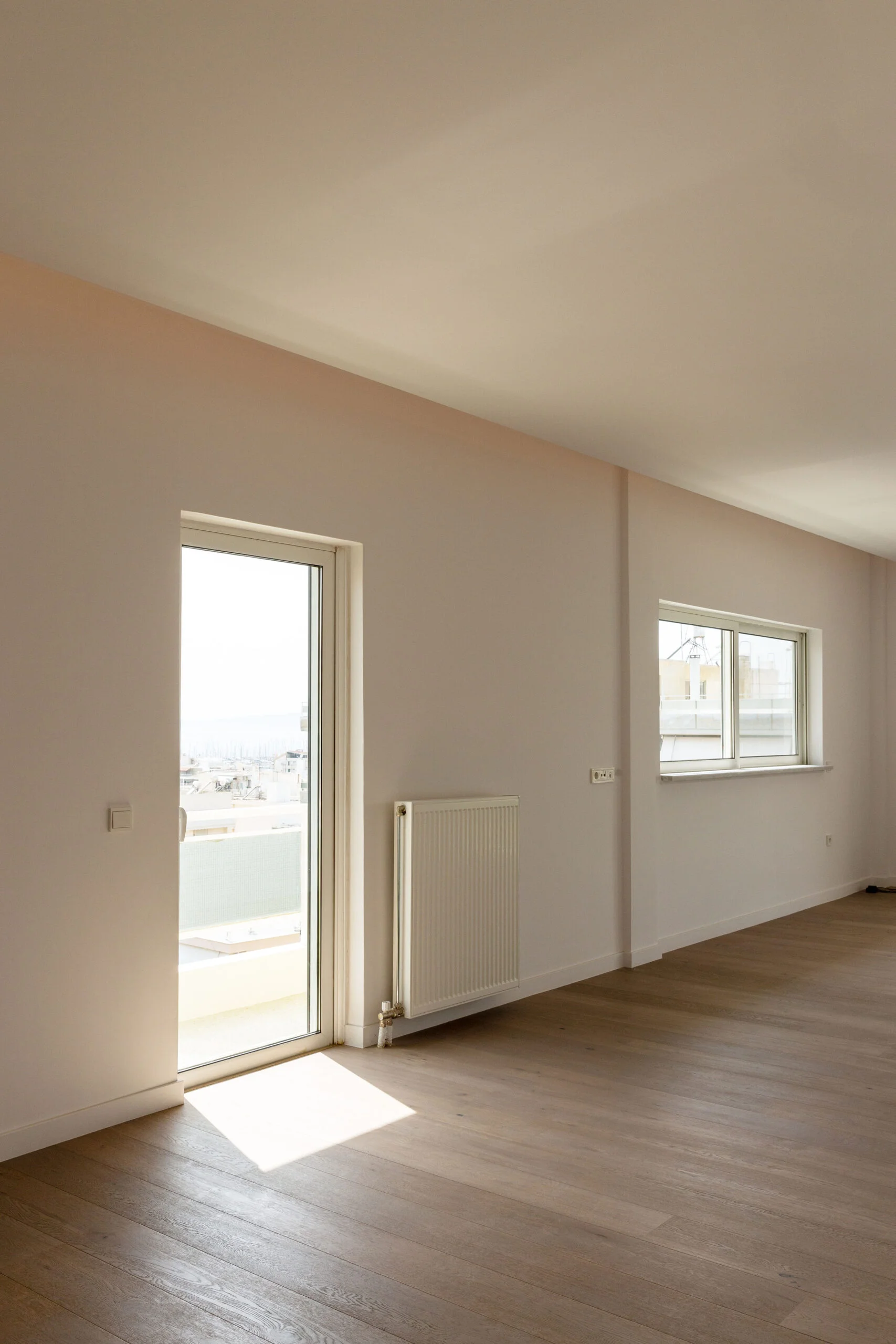 Alimos, Penthouse apartment for sale, 5th floor, 118 sq.m., fully renovated, building year 1973. Sea views, 3 bedrooms, with dressing room in the master room, 3 Bathrooms (1 en-suite, 1 WC), Living room, open plan kitchen, spacious balcony with view. Hidden lighting in living rooms and bedrooms. Floors: Parquet, Heating: Autonomous-natural gas. Air conditioning with grilles in the living room.
