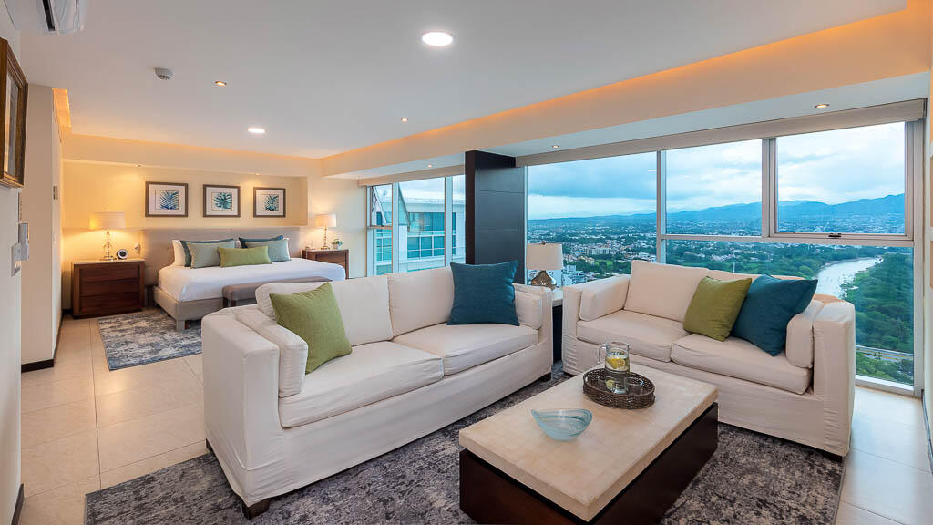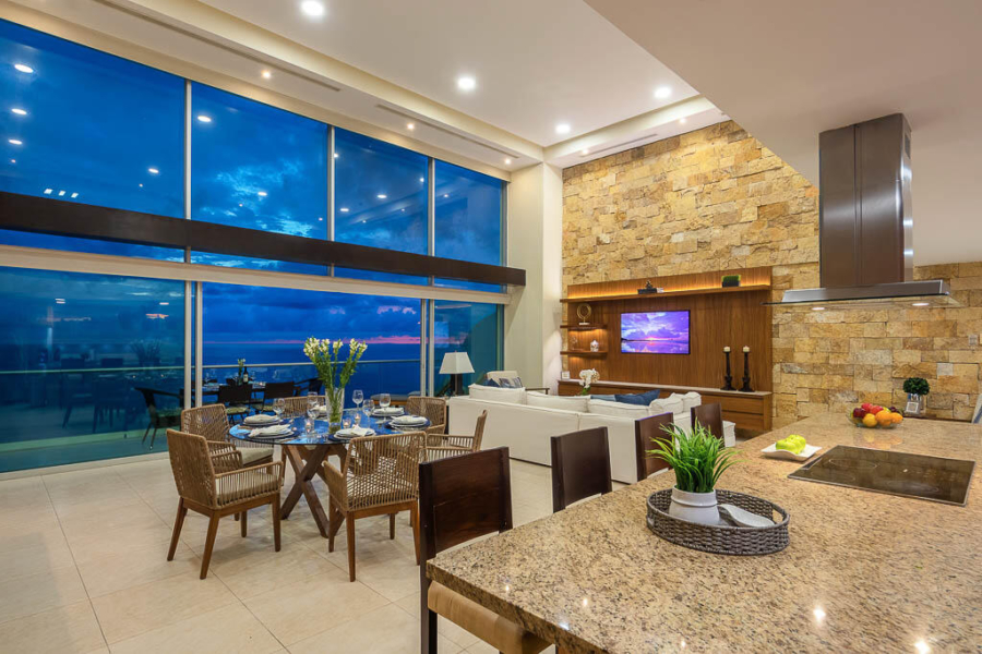 This luxury penthouse includes 3 full bedrooms and baths plus service quarters with bath, fully furnished , kitchen with top appliances and granite countertops, A/C thorughout, TV room, living and dining room facing the bay and town where You can enjoy PVs famous sunsets. This PH is located in tower 3 the best of the Peninsula towers closes to river and ocean and includes 3 car parking space, ammenities for the development: Gym, Movie Room, Party Room, Spa with Jacuzzi and sauna and steam bath and Concierge and Massage service, giant pool areas and large sun decks, 24/ / 7 Security. “Peninsula PV” is 5 minutes by car from Cosco and within walking distance to shopping centers and top restaurantes, and PVs top hospital. This is a one of a kind property that You need to see.