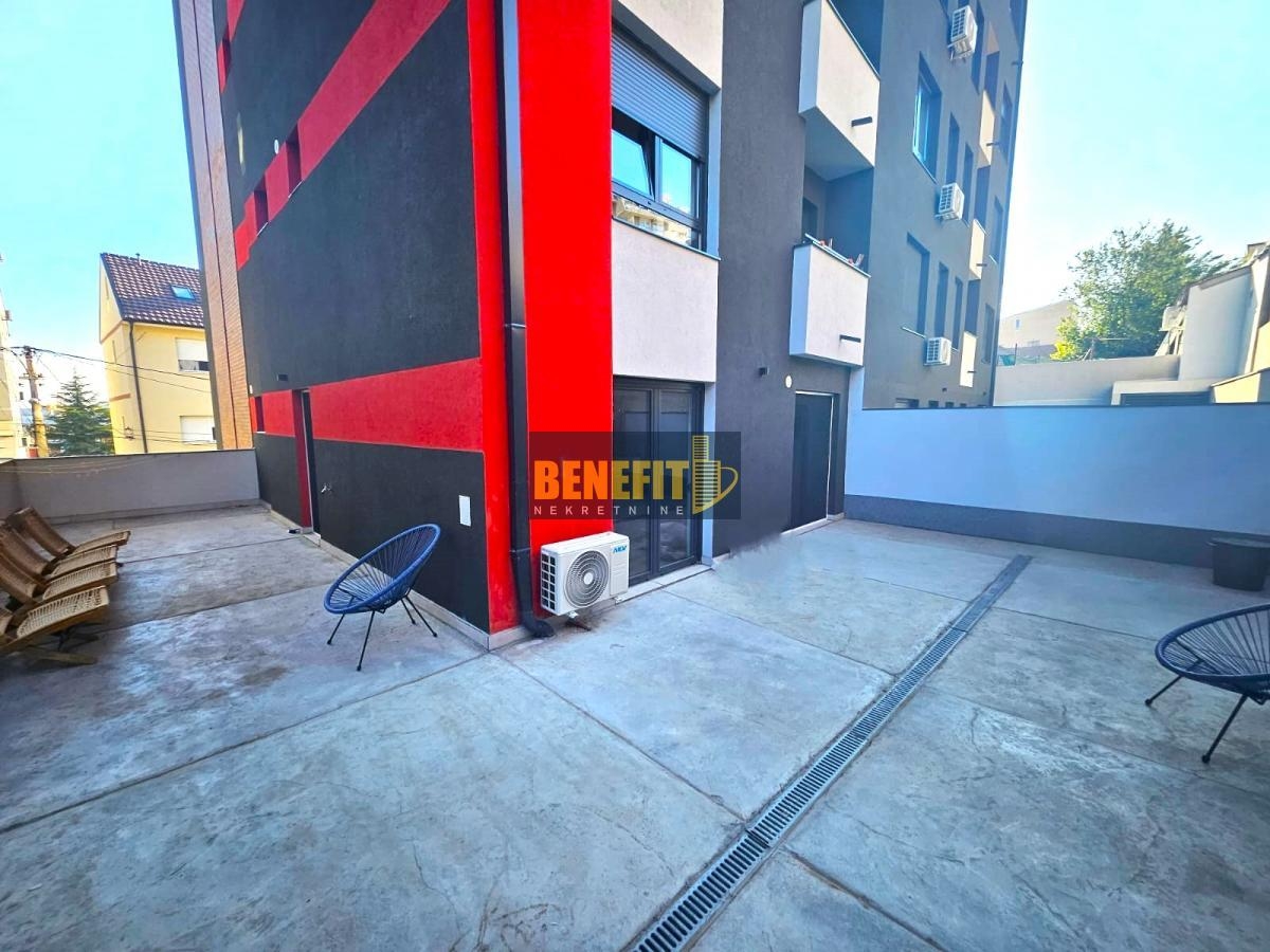 Površina stana je 74m2 a obuhvata ulazni hodnik, dnevnu sobu, trpezariju, kuhinju, dve spavaće sobe, od čega je jedna master, dva kupatila i prostranu terasu-dvorište od čak 66m2.