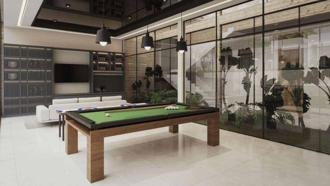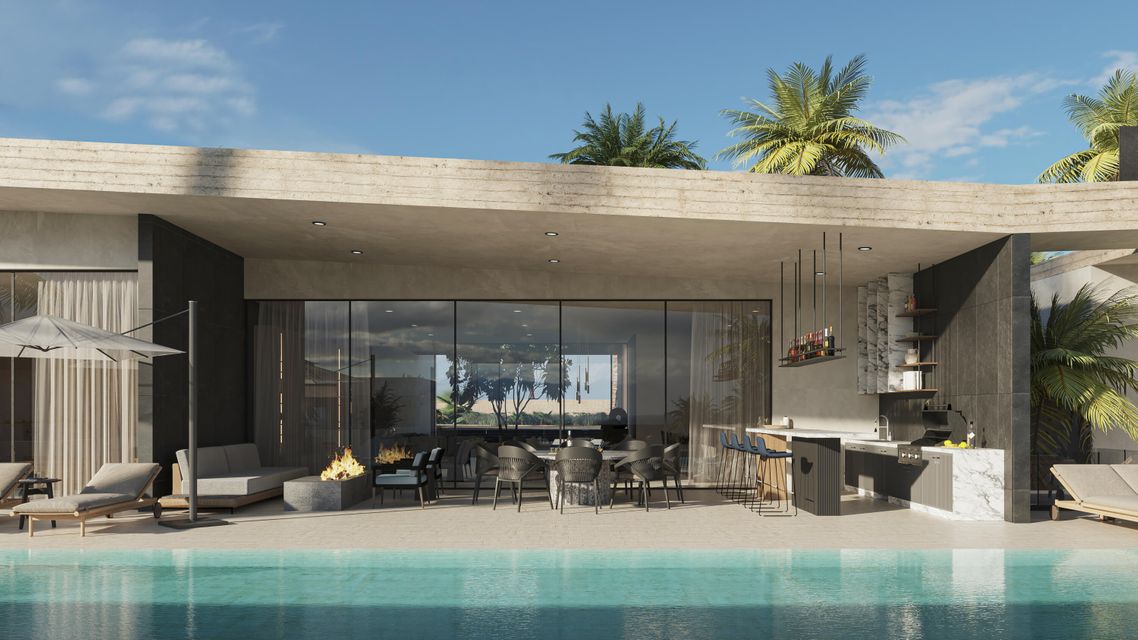 *15 foot high ceilings and open plan Family, living, dining and kitchen with a flawless access to the Pool deck