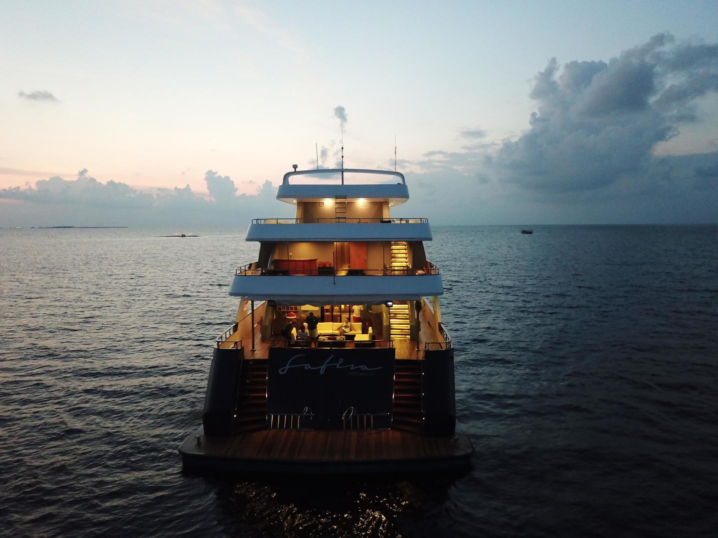 Nest Yachts presents to you “SAFIRA” a Luxury Safari Yacht constructed in 2017. Measuring 142′ (43.35m) with a solid steel hull this yacht accommodates 28 guests with 14 luxury cabins. Equipped with Twin Caterpillar C18 engines. Fuel capacity of 40,000 Litres for long-range expeditions.