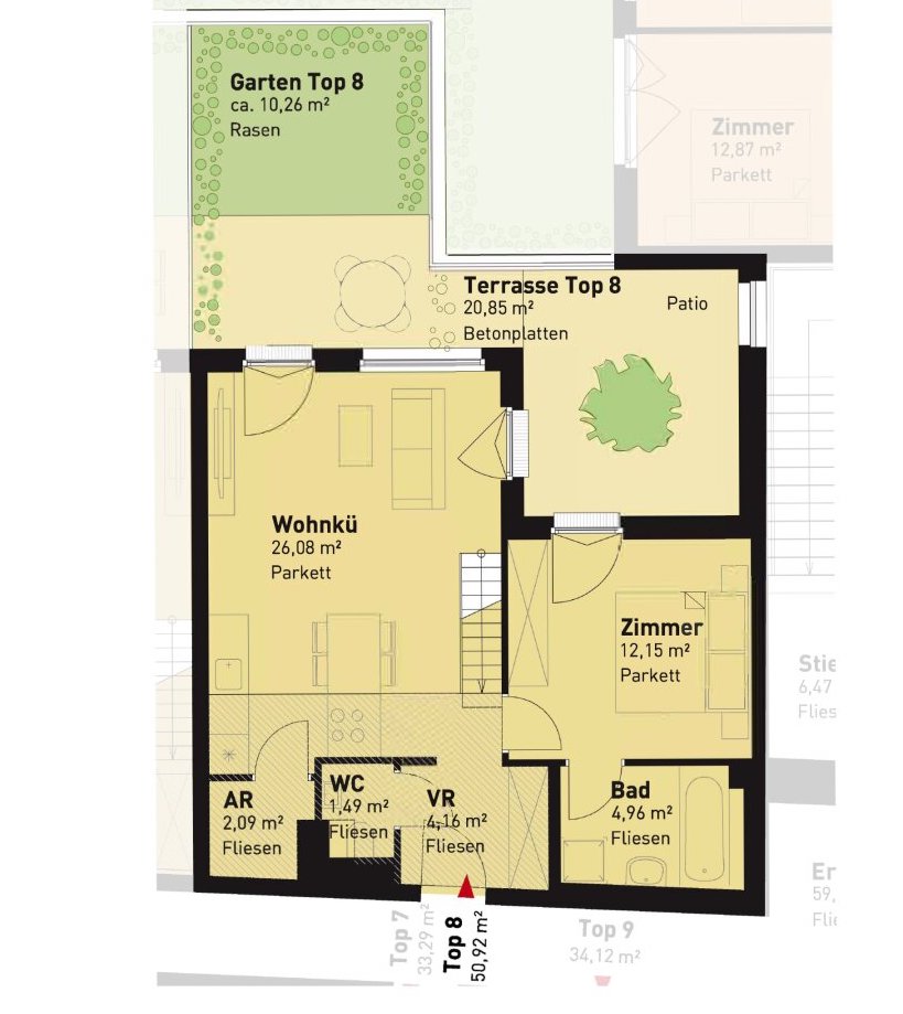 57 apartments are being built on the Ölberg in Klosterneuburg, which will integrate with the cozy character of the area. One and a half to four room apartments with sizes from 31 m² to 93 m² are available, all including open spaces such as garden, terrace, loggia or balcony. A special highlight are the mini lofts (gallery apartments) on the ground floor.